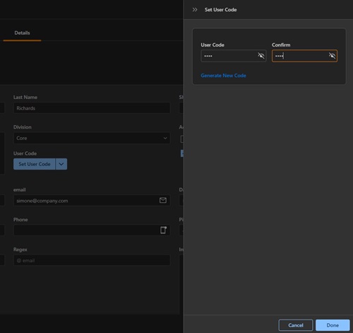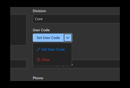 • Clear User Code: Operators can also clear an existing user code using the same button’s dropdown option, even if the cardholder does not currently have a user code assigned.